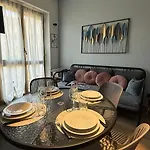 The 45 m^2 apartment provides a balcony and a sitting area furnished with a sofa set, along with modern amenities like high-speed internet and a TV set. Bathroom amenities comprise a bidet, a separate toilet, and a shower, as well as hair dryers and bath sheets.